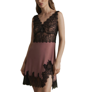 The effetto Bamboo Enigma Chemise w/ Breast Support (03335) is a gorgeous, lightweight nightgown composed of super soft bamboo viscose material that will keep you cool and comfortable all night long. This night dress features a built- in bra, wide lace straps in the front and thin straps that adjust in the back for a custom fit. The luxury lace is cut by hand and has a decadent look. This nightgown ends at mid thigh on most and has a hook & eye back closure for additional customization. Check out the ravishing effetto Bamboo Gone With The Wind 3/4 Sleeve Robe (03161) for beautiful robe, sold separately.