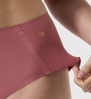 Evelyn & Bobbie High-Waisted Retro Bikini Panty (1704) is a retro-style brief panty with a high waist that sits just below the navel, featuring a cotton gusset and high-cut leg openings that flatter and visually lengthen the legs. This no-show panty is SUPREMELY comfortable and boasts double-bonded seams that lay flat under clothing (even leggings) to prevent visible panty lines. This retro panty offers moderate coverage, slightly cheeky along the outer rear. Evelyn & Bobbie dedicates their brand to a "do no harm" ethos, so your favorite undies are always BPA-Free, Latex-Free, Copper-Free, Nickel-Free, and Non-Toxic.