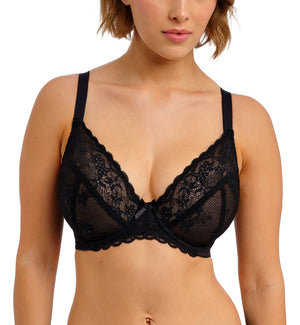 The Freya Quinn Plunge Underwire Bra (404302) features a stunning floral lace trimmed cup. This bra offers a flattering neckline with a plunge design and non-padded cups that create a natural silhouette without adding volume. The multi-sectioned, underwire cup provides shape and support. Fully adjustable straps create a custom fit and feel that will prevent slippage.