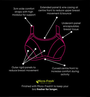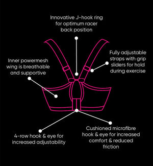 Customers are raving about how comfortable the Curvy Kate Everymore Underwire Sports Bra is! It has an amazing size range going up to a K cup, but it’s not just great for the larger sizes; our smaller busted customers love it too! This sport style features a J-hook clasp that's located near the bottom of the straps for ease of attachment and adjustability. There's a slight amount of padding around the wire and comfort band, both of which add to the overall comfort of the style, but it's not padded enough to make it bulky! The band and cups are made of a mesh material that's fantastic for breathability and wicking sweat away. It also provides a less conical shape when compared to its closest alternative, the Elomi Energise. Both make excellent every-day bras, and many customers use them as that and not as a "sports bra" option. Customers do seem to lean towards this bra, however, for its more natural, rounded shaping. This style works great for women who have breasts that are heavier on the bottom and not as full on the top, but it works very well for fuller breasts as well. It’s a wonderful all-around sports bra, though I honestly wouldn’t recommend it for high-impact sports. I consider it to be more of a medium-impact style.