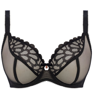 The Freya Loveland Plunge Underwire Bra (401002) is where beautiful floral design meets luxury styling. This underwire bra features a multi-part cup made of a semi-sheer, rigid mesh. The flattering plunge neckline offers great shaping without push-up. The keyhole detail at the center gore and gemstone charm creates a feminine look. The straps are fully adjustable to create a custom fit. Check out the matching underwear style Freya Loveland Brief Panty (401067) for a strikingly sexy lingerie set, sold separately.