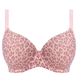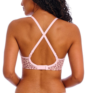 Freya’s Undetected in Iced Mocha is such an adorable print! It's bold enough to wake up your wardrobe, but with a subtle enough color palette that it won't show through most of your lighter-colored shirts. The straps also convert into a crisscross shape to provide some extra lift and blend in with any racerback-style outfit. This bra works best for people with full, round breasts. If your breasts are very bottom-heavy or you have softer tissue, I would recommend a bra that has a higher center wire to offer better containment. If there is a small gap at the top of the cup, don’t worry; that is very typical for any smooth-molded cup bra and isn’t visible underneath your clothing, hence the term t-shirt bra.