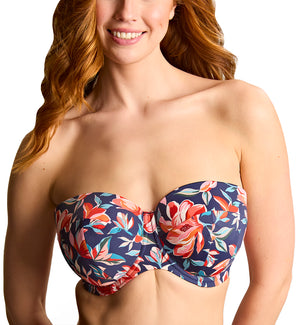 The Panache Ashley Bandeau Underwire Bikini Top (SW2063) features a custom-designed magnolia pattern that celebrates the timeless charm of the Liliflora in summer gardens. This strapless top comes with removable, adjustable straps so you can maintain a chic, strapless, tan-line free look. The underwire cups are lightly padded and have a multi-sectioned design for shaping and support. This bikini top is crafted from 100% recycled main fabric that has a naturally soft and lightweight feel.