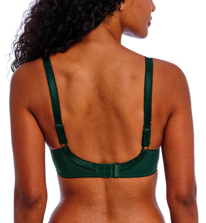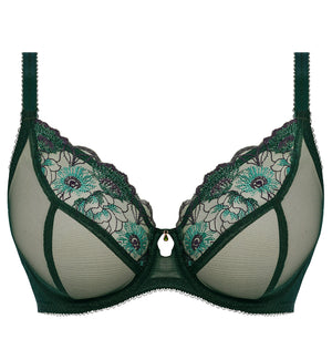 The Freya Loveland Plunge Underwire Bra (401002) is where beautiful floral design meets luxury styling. This underwire bra features a multi-part cup made of a semi-sheer, rigid mesh. The flattering plunge neckline offers great shaping without push-up. The keyhole detail at the center gore and gemstone charm creates a feminine look. The straps are fully adjustable to create a custom fit. Check out the matching underwear style Freya Loveland Brief Panty (401067) for a strikingly sexy lingerie set, sold separately.