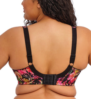 The Breakout Bras crew actually had a hand in designing the Morgan, and I'm pleased with the result! We suggested something with nice, round shaping, good stretch lace, and Elomi comfort. The stretch lace in the top cup is similar to the Jasmine, the Envy, and the Clara by Panache, providing a good hug for nice, round contour, and the material is so soft you barely feel it! Morgan is hands down one of the most popular styles among our in-store customers. They love the flexible stretch lace that accommodates both full and shallow breasts, and they find the overall fit to be very comfortable. Morgan pulls in from the sides to create lovely, rounded shaping. This style is containing, but has more of a square-shaped fit, rather than a triangular full cup like older Elomi and Goddess styles.