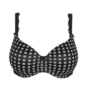 The Prima Donna Madison Padded Underwire Bra (0262120 & 0262121) features seamless, lightly-padded rounded cups in an eye-catching checkered pattern for high rounded shaping with soft everyday comfort. Adjustable shoulder straps have feminine lace detailing, and the low scoop back works perfectly under a variety of tops.