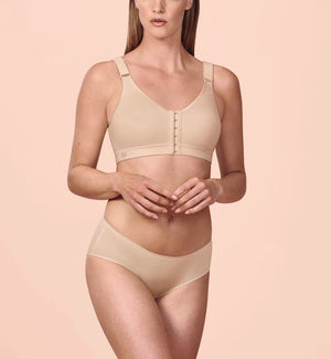 The Anita Frontline Open Wireless Front Closure Sports Bra (5523) delivers reliable, all-day support with a sleek, performance-focused design perfect for activities or everyday wear. Crafted from ultra-smooth, breathable fabric, this wire-free sports bra offers a soft feel while providing firm encapsulation and compression for excellent bust control. The wide, cushioned adjustable straps stay comfortably in place and minimize digging, with hook-and-loop adjustment for a customized fit. A standout feature is the multi-hook front closure making dressing and undressing fast and easy.