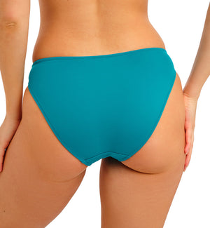 Freya Jewel Cove Bikini Swim Brief (7234) is a classic bikini bottom with a mid-rise waistband and high-cut leg openings for a lengthened look. This simple, traditional swim bottom pairs with Freya Jewel Cove Banded Underwire Halter Bikini (7232) or other Freya Jewel Cove Tops, (sold separately).