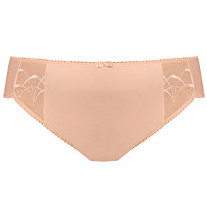 The Elomi Cate Matching Embroidered Panty Brief 4035 is a full figure satiny brief with semi-sheer delicate embroidery on the side panels and a bow detail at the center front. This brief offers soft-edged elastic waist band with a flat finish for premium comfort, and provides full rear coverage.