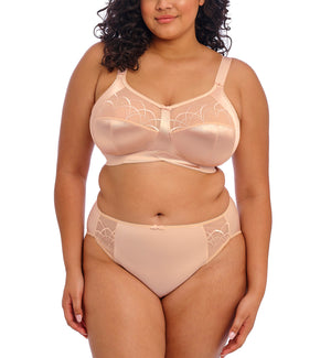 The Elomi Cate Matching Embroidered Panty Brief is full-coverage with great leg room. The Cate panty doesn't ride up and stays in place all day. The material is very soft and comfortable for all day wear. These are available in both basic and fashion colors, so you can stock up your panty drawer. The Cate panty has a medium rise and should sit right below your belly button, depending on your height. Pairing this with the matching bra is a no brainer for a easy basic set.