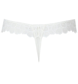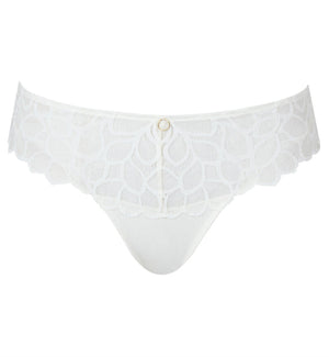 Panache Allure Thong (10769) features stretch lace adorned with modern large floral petals in bold outlines. This thong sits low on the hips and boasts a wide lace band along the hips and rear that flexes to your shape to ensure no VPL (visible panty line). Pair this luxurious thong with Panache Allure Stretch Lace Full Cup Underwire Bra (10765), sold separately, for an irresistible and modern lingerie set.