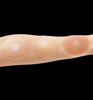 The purpose of the Booby Tape Nipple Covers is to shield your nipples from discomfort when using and removing Booby Tape. However, their versatility allows you to use them as standard nipple covers when wearing a non-molded bra or for nipple protection under any adhesive bra option. The covers have an adhesive on the back, and the package states they'll remain sticky for up to 25 uses. We've found that to be accurate, but the pressure from a bra, boob tape, or adhesive cup will keep the nipple cover in place even after the adhesive has worn off. If you are using this as a nipple cover, don't worry about it covering the entire areola. It just needs to cover enough to hold the nipple down. The cover only needs to be wider if being used as a braless solution. Booby Tape's Nipple Covers are available in clear, light, and medium.