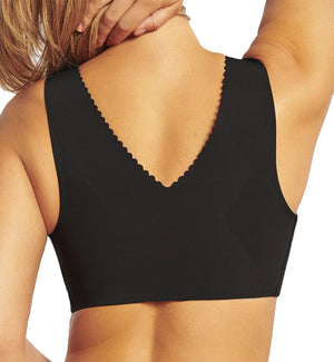Evelyn & Bobbie EVELYN Deep V-Neck Bralette (1834) is the best of the BEYOND and DEFY bras in one style. A feminine scalloped edge and deep v-neckline will flatter your figure. It has an ergonomic design that minimizes back pain and provides wire-free support. The smoothing fabric helps this seamless bra disappear under clothing. With a patented 360 sling inside the cups, it creates an uplifted silhouette and rounded shaping without the discomfort of an underwire. Feel good in your bra AND feel good about your bra- Evelyn & Bobbie dedicates their brand to a "do no harm" ethos, so your bras are always BPA-Free, Latex-Free, Copper-Free, Nickel-Free, Wire-Free, and Non-Toxic.