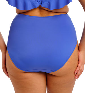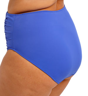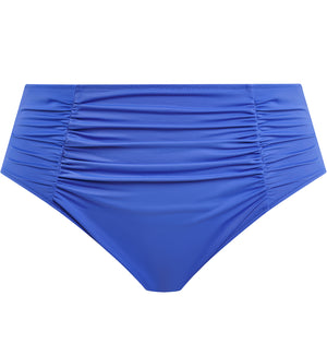 The Elomi Plain Sailing Gathered Full Bikini Brief (ES7286) features a high rise waist and full rear coverage.The front features flattering ruched styling that hugs the body and conceals any imperfections. This brief is fully lined for modesty. Check out the Elomi Plain Sailing Bardot Ruffle Underwire Plunge Bikini Top (ES7282) for a matching swim set, sold separately.