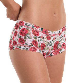 The Hanky Panky Women's Signature Lace Printed Boyshort (PR4812P) is made from hanky panky's famous signature lace designed with comfort in mind. This stylish short offers all-over sexy sheer coverage in a stretch lace. The waist is mid-rise, sitting below the navel on most. Full rear coverage, low cut leg openings and a cotton lined gusset make this comfy short perfect for all day wear. Check out the Hanky Panky Women's Signature Lace Boyshort (4812) for the same great signature lace boyshort but in solid colors, sold separately.