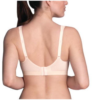 Anita's Performance Mesh Max Support Softcup Sports Bra (5566) provides high-impact support in a breathable ventilated fabric that minimizes bounce and discomfort but still provides a defined, lifted look. Features unlined seamless cups in a soft, comfortable fabric with plenty of airflow, plus elastic stitching along neckline and center front to create anchorage and keeps things in place. Wide adjustable shoulder straps won't slip or slide down, and the sides and back are crafted from a mesh fabric that wicks away moisture to keep you feeling cool and dry.