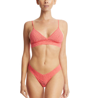 Soft and stretchy just like Hanky Panky Signature Lace, this Hanky Panky Animal Instincts Low Rise Thong (AM1051P) features the same flattering V-front and V-back design with flexible lace stays in place without digging in. This semi-sheer lace panty features an updated zebra and leopard animal print instead of flowers, offering a new look on your favorite no-VPL low-hip thongs!