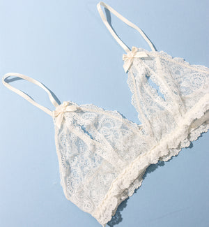Hanky Panky &oh Luxe Lace Open Bralette (977901) is oh-so-enticing on your wedding night, featuring luxuriously soft stretch chantilly lace with vertical slits creating open cups, topped with delicate satin bows. The triangle cup bralette offers adjustable spaghetti straps and pulls on over the head. Pairs this flirty wedding night bralette with Hanky Panky Bridal Luxe Lace Crotchless Brazilian Brief (972701), sold separately, for a stunning come-and-get-me honeymoon lingerie set.