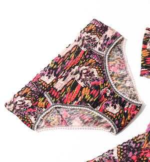 Hanky Panky Daily Lace Printed Cheeky Brief (PR772441P) is a feminine, flattering cheeky panty with whimsical semi-sheer floral stretch lace. This high-waisted panty sits at above the hip on most, with a figure-flattering wide waistband and high-cut leg openings that visually lengthen your silhouette. Hanky Panky keeps those VPLs (visible panty lines) under wraps as always with this soft stretch lace panty that is sure to become an everyday essential in your lingerie drawer.
