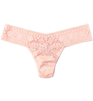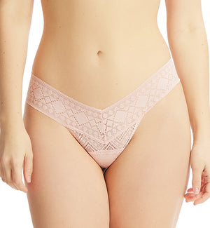 Hanky Panky Gem Lace Low Rise Thong (491582) features contrast geometic flex lace that stays in place without digging in, making this panty a sexy and comfortable thong for daily wear. The low rise waist sits at the low hip, and the thong rear coverage eliminates visible panty lines (VPLs).