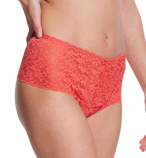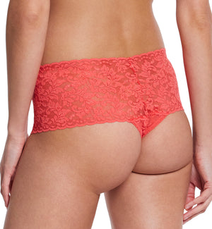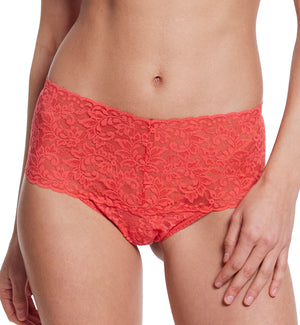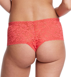 The Hanky Panky Retro Lace Thong (9K1926P) is an ultra comfortable thong with an extra-generous waistband designed to prevent digging in. This panty comes in one-size and fits sizes 0-12 best (hips measuring 34"-42"). The beautiful high-waisted panty is made of Hanky Panky's semi sheer retro lace with a floral pattern and is cut to create a flattering v-shape in front and back. The back features sexy thong rear coverage. Check out the plus sized version of the same great thong Hanky Panky Plus Size Retro Lace Thong (9K1926X) that is designed to fit US sizes 14 through 24 (hips measuring 44"- 57"), sold separately.