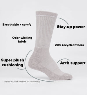 SOCK it to me Athletic Ribbed Crew Socks feature fun prints you love from SOCK it to me, but also features healthy feet components like arch support and light compression, plus plush cushioning that runs from your toes to that spot on your heel where your shoes can rub to avoid blisters. These unisex crew socks are woven with aerosilver antimicrobial fabric that helps eliminate odors. You just found the perfect socks to wear hiking, biking, running, or lounging on the couch!