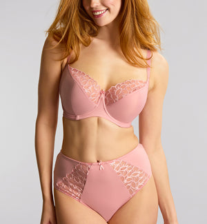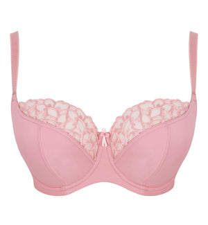 The Panache Cora Balcony Underwire Bra (11411) exudes flawless elegance and femininity in a comfortable and supportive underwire bra. This bra features a rigid top cup with laminated lower cups that are designed to support and uplift, providing forward projection. The soft side wings offer a seamless look under any outfit with their comfortable and smooth finish. The shoulder straps are fully adjustable for a custom fit and feel. Elegant Swiss embroidery adds a feminine touch with bold and organic lines for a modern floral aesthetic.