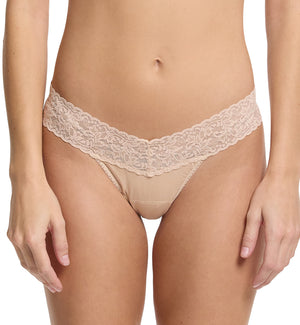 The Hanky Panky Cotton Low-rise Thong (891581P) sits low on the hips and has a waistband crafted from Hanky Panky's signature stretch lace for a comfortable fit. The front panel is made from breathably soft cotton, making this thong perfect for everyday wear. Features no rear coverage.