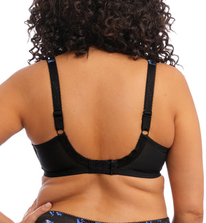 The Breakout Bras crew actually had a hand in designing the Morgan, and I'm pleased with the result! We suggested something with nice, round shaping, good stretch lace, and Elomi comfort. The stretch lace in the top cup is similar to the Jasmine, the Envy, and the Clara by Panache, providing a good hug for nice, round contour, and the material is so soft you barely feel it! Morgan is hands down one of the most popular styles among our in-store customers. They love the flexible stretch lace that accommodates both full and shallow breasts, and they find the overall fit to be very comfortable. Morgan pulls in from the sides to create lovely, rounded shaping. This style is containing, but has more of a square-shaped fit, rather than a triangular full cup like older Elomi and Goddess styles.