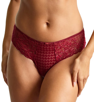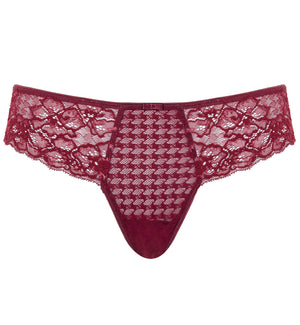 The Panache Envy Thong (7289) is perfect for a day at home or dressing up for a night on the town. This panty blends houndstooth jacquard patterned fabric with floral stretch lace to keep you comfortable and feeling sexy. Panache added a shimmering lurex thread to the lace sections, adding a touch of sparkle and elegance to the "Sparkling Cherry" version. This thong has stretch floral lace across the hips, houndstooth front panel and cheeky thong rear coverage in a semi-sheer fabric. This thong coordinates with the Panache Envy Bra styles perfectly for a matching lingerie set, sold separately.