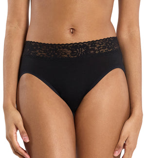 The Hanky Panky DreamEase French Brief (632464) is a high-waisted brief panty with a comfortable waistband, with full back coverage and higher-cut leg openings for comfortable everyday wear. Lace trims may vary.