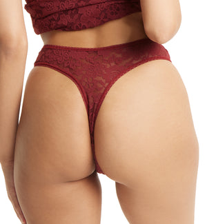 The Hanky Panky Daily Lace High Cut Thong (771851) has a retro-style high waistband and high-cut legs for a visually lengthening look. Allover floral lace is feminine and romantic, but the high-cut leg openings add a fun and flirty hint of skin along the hips. With minimal rear coverage, you won't see any visible panty lines (VPLs). Comfortable enough for everyday wear, but gorgeous enough for special occasions, this thong is sure to be a favorite.