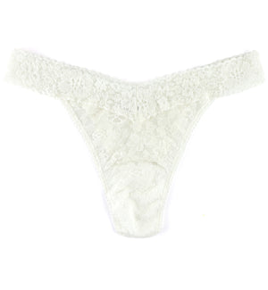 Hanky Panky Daily Lace Original Rise Thong (771101P) features flexible daily lace that stays in place without digging in, making this panty a sexy and comfortable thong for daily wear. The high-rise, retro-style waist sits comfortable along high hip, and the minimal rear coverage eliminates visible panty lines (VPLs). Available in bright and vibrant colors, as well as options that suit a variety of skin tones.