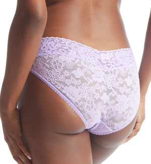 The Hanky Panky Daily Lace V-kini (772371P) marries Hanky Panky's comfortably daily lace with a beautifully feminine mix of color and moderate rear coverage. The V-front, V-back design is supremely flattering, and a hint of skin peeks through in this very slightly sheer design.