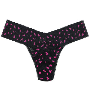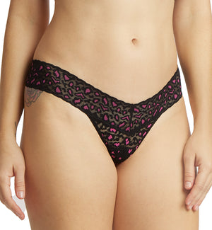 The Hanky Panky Cross Dyed Leopard Low-rise Thong (7J1051P) is a beautiful low-rise thong crafted from Hanky Panky's signature stretch lace. This thong sits low on the hips, and Hanky Panky's V-front, V-back construction is uniquely figure-flattering. With two-toned lace in a subtle animal print, this thong panty is sure to become an at-home favorite. Minimal rear coverage eliminates visible panty lines (VPLs).