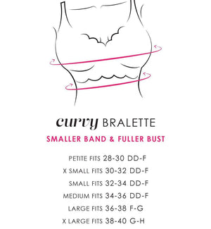 The Curvy Racie doesn't have adjustable straps, so it's really imperative to make sure you're sized correctly for this bralette! The Curvy line takes some of Cosabella's best-sellers (like the Racie and Sweetie bralettes) and redesigns them to better suit women with larger busts and small ribcages. The Racie has a strong underbust band and racerback styling for lift and support, plus full coverage. If you're between sizes, it may be worth it to size down to get the tighter, more supportive fit under the bust.