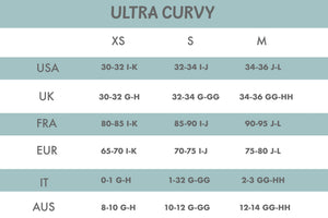 The Ultra-Curvy has PLENTY of room in the cups for very large-busted women! You will need to size down in the band to get the right amount of support, as this style does run a little large. The Ultra-Curvy will really ONLY work for those larger cup sizes up to a UK GG-JJ. G cups and below will feel most comfortable in the Curvy Sweetie or regular Sweetie. Our employee who wears a J felt comfortable in the Medium size.