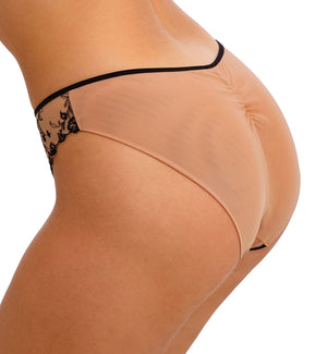 The Freya Entwined Brief Panty (403850) features tattoo-inspired motifs, turning lingerie into wearable art that feels both modern and timeless. This edgy brief has a low rise waist and moderate rear coverage. The edges feature contrasting trims, adding visual interest. Check out the matching bras Freya Entwined Plunge Underwire Bra (403802) and Freya Entwined Molded Demi T-Shirt Underwire Bra (403833) for a coordinating lingerie set, sold separately.