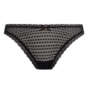 Take center stage this season with the Freya Spot Light High Leg Brief (403953). This all-lace panty features sexy sheer spot mesh paired with feminine lace trims. The high cut leg openings flatter your silhouette and elongate your legs. This brief offers a mid rise waist and cheeky rear coverage in an all-over sheer mesh fabric. Cute satin ribbon bow and metallic disc charm finish this panty with a feminine touch. Check out the matching bra Freya Women's Spot Light Plunge Underwire Bra (403905) for a coordinating lingerie set, sold separately.