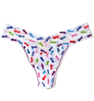 The Hanky Panky Signature Lace Printed Original Rise Thong (PR4811P) was created in NYC in 1986 and has been keeping people comfortable for decades with its ultra-soft stretch lace. This floral lace thong features a V-front and V-back design. The flexible lace stays in place without digging in, making this panty a sexy and comfortable thong for daily wear. Check out the printed version of this thong Hanky Panky Signature Lace Original Rise Thong (4811P) for a new take on this classic thong, sold separately.