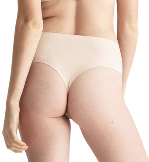 Evelyn & Bobbie's High-Waisted Thong (17032 & 17063) is a best-seller for the company, and it's easy to see why. The smooth microfiber construction virtually disappears under clothing, and the variety of shades means that just about every skin tone can find their perfect nude. The wide waistband sits comfortably just below the navel, and this thong panty features no rear coverage to prevent visible panty lines.