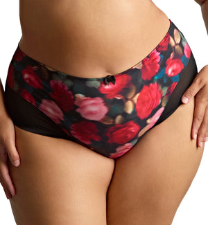 Sculptresse by Panache Bliss Deep Brief (10682) features sleek front and back panels with flexible lace front-leg panels in a flat geometric print that adds a little flare but keeps this panty smooth under clothing. This high waist panty has good rear coverage with high leg openings that hug your curves flawlessly. Pair with Sculptresse by Panache Bliss Full Cup Underwire Bra (10685), sold separately, for a matching everyday full figure lingerie set that works under your office attire AND your day-off clothes.