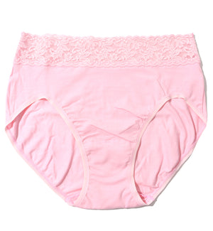 The Hanky Panky Organic Cotton French Brief With Lace (892461) is a classic, high-cut panty with full back coverage and a flattering high-cut leg, in organic, USA-grown Supima cotton-spandex. Features Hanky Panky's signature stretch lace at the waistband.