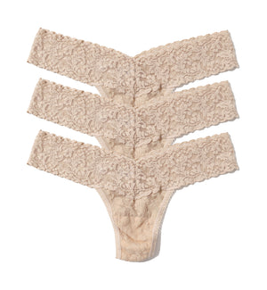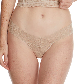 The Hanky Panky 3-PACK Signature Lace Low Rise Thong (49113PK) is where on-trend styling meets all day comfort. This underwear is made of Hanky Panky's comfy signature stretch lace with a semi-sheer design. Cute boxed set of three low rise thongs in comfy signature lace that Hanky Panky is famous for. The low rise waist sits well below the navel on most and is designed to fit US sizes 2-12. The back features cheeky thong rear coverage. The waistband is cut in the front and back in a V-shape for a super flattering cut that's always in style. Check out the Hanky Panky 3-PACK Signature Lace Original Rise Thong (48113PK) for a higher rise version of the same great panty, sold separately.