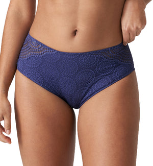 The Prima Donna Twist Petit Paris Matching Full Brief (0542141) features an intricate crochet lace design and moderate rear coverage. This mid-rise brief has semi-sheer panels with scalloped edge details that extend from hips to rear. The rest of the brief is lined for modesty, including a cotton gusset. Purchase the matching bra styles Prima Donna Twist Petit Paris Full Cup Underwire Bra (0142140) or Prima Donna Twist Petit Paris Triangle Underwire Bra (0142144) for a coordinating lingerie set, sold separately.