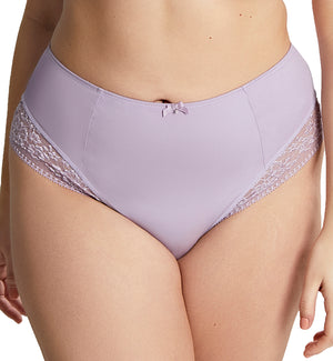 The Sculptresse by Panache Roxie Highwaist Brief (9582) blends comfortable fabric with sultry lace for an everyday high-waisted panty that still flatters. Features scalloped embroidered trim and full rear coverage with semi-sheer lace detailing at front and back leg openings. Pairs perfectly with the Sculptresse by Panache Roxie Plunge Underwire J-Hook Bra (9586), sold separately.