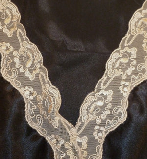 The Shadowline Charming Lace Trim Sleepshirt (4503/4503X) combines silky satin charmeuse fabric with a relaxed fit for ultimate comfort. This lace trimmed sleepshirt is 36" long. This sleepwear features dolman sleeves and a loose, relaxed fit that skims over your curves for a flattering fluid shape. V-shaped openings on either side of the hemline allows for unrestricted movement, ensuring ulitimate comfort. Check out the coordinating robe Shadowline Charming Satin Wrap Robe (4510/4510X) for a matching sleep set, sold separately.