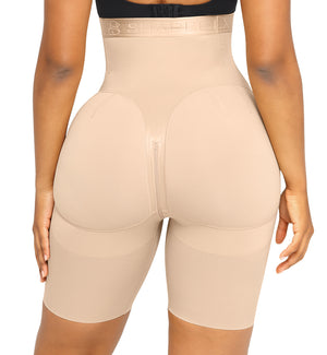 The SHAPELLX BOOT-YEAH SilkSculpt High-Waisted Short (MT230442) features a 15 inch zipper in the gusset area for bathroom convenience, setting this shapewear short apart from the rest. The front features an invisible zipper design for easily getting the garment on and off. Under the zipper is a hook and eye closure for extra security. The branded comfort waistband molds to the body and wont squeeze. The rear offers full coverage and butt-lifting design for a defined silhouette.