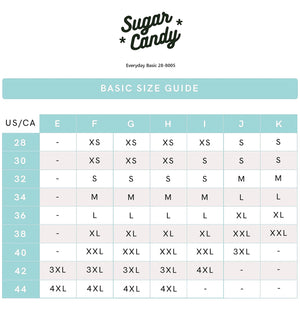 The Sugar Candy is really a great unique style from Cake, designed to fit F cup to H cup in UK sizing. This style won't work for women with cup sizes A, B, C, D, DD, or E. You'll want to take a look at the Sugar Candy Size Chart to get an idea of your correct sizing.