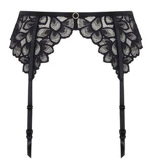 The Panache Allure Suspender (10768) will complete your Allure set with its understated elegance and feminine finishing touches. Crafted in seductive black lace with gold hardware details, this statement piece pairs perfectly with the Allure bra and brief styles. The straps are adjustable and are made of a soft-stretch fabric for a contoured fit and comfort while wearing. Hook and eye back closure.